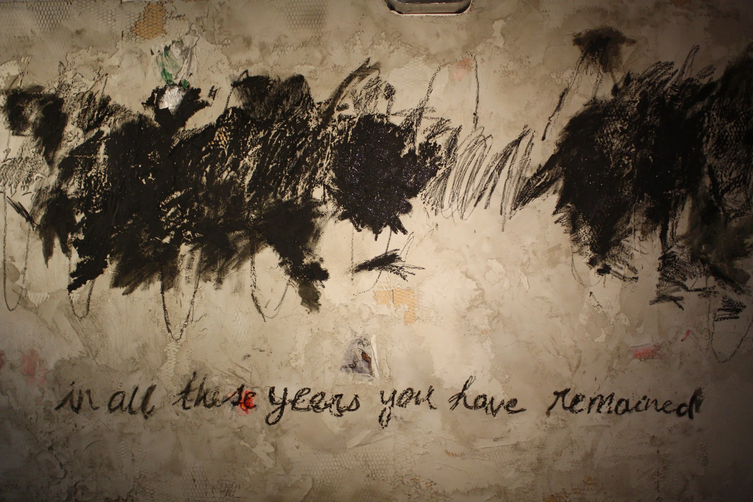 A Remarkable superstition, 2024 Cement, oil stick, heat-resistant tape and miscellaneous objects and particles Installation; Varying sizes (Distinction awarded Ruskin 2024 MFA Degree show)
